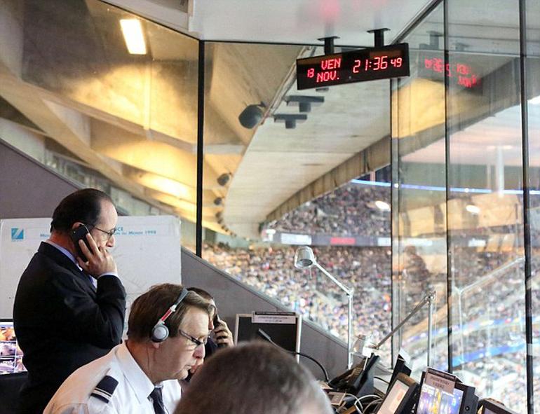 Hollande, ikinci saldırıdan 5 dakika sonra, saat 9.36'da stadyumdaki güvenlik kontrol odasında telefonla konuşurken böyle görüntülendi.