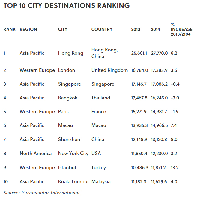 Euromonitor’ün listesinde ilk 25’lik listeye Türkiye’den iki şehir girdi.