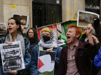 Fransa'nın başkenti Paris'in en prestijli eğitim kurumlarından Paris Siyasi Araştırmalar Enstitüsü'nde (Sciences Po) Filistin yanlısı protesto gösterisi düzenleyen bir grup eğitim kurumuna girişi engelledi.