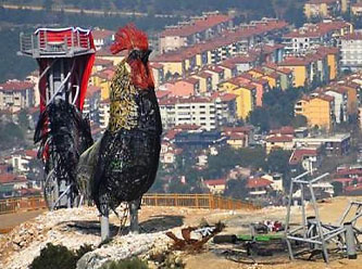 Denizli'de Pamukkale Belediyesi tarafından Pamukkale Üniversitesi kampusünde dağlık alanda dev horoz heykeli inşâ ediliyor.