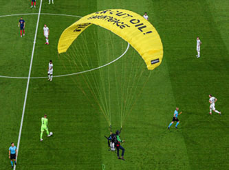 Avrupa Şampiyonası (EURO 2020) F Grubu'nda Fransa ile Almanya'nın karşılaştığı maç öncesinde çevre örgütü Greenpeace üyesi bir aktivistin, motorlu paraşütle yaptığı eylemde iki kişinin yaralanmasına yol açması sosyal medyada yoğun tepkiye neden oldu.