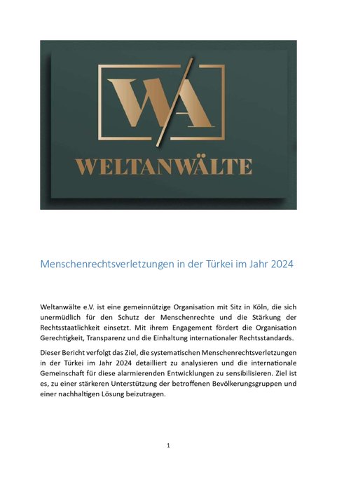 Weltanwälte e.V. Başkanı Avukat Mehmet Reşat Bozkurt raporla ilgili yaptığı açıklamada şu ifadeleri kullandı:“Raporumuz, Türkiye’deki insan hakları ihlallerini tüm yönleriyle ortaya koymayı ve mağdurların seslerini uluslararası kamuoyuna duyurmayı hedefliyor. İnsan haklarının korunması için dayanışma içinde olmalıyız.”
