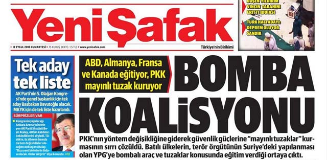 ABD'nin Ankara Büyükelçiliği, isim vererek Yeni Şafak gazetesinde çıkan "ABD, teröristleri Türkiye'ye yolluyor" yönündeki haberlerin gerçek dışı olduğunu bildirdi. Elçilikten yapılan açıklamada "Gerçek şudur: ABD ve Türkiye, DAEŞ'e karşı omuz omuza mücadele veren ortaklardır. Aksi yöndeki iddialar, Türkiye'nin koalisyonun tam üyesi olarak gerçekleştirdiği eylemlerle çelişmektedir." denildi.