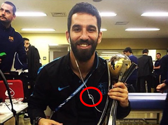 Hem Milli Takım’da hem de Barcelona kafilesindeyken çekilen resimlerde yer alan kulaklık detayında Arda Turan’ın kulaklığın düğümünü hiç çözmemesi ve o şekilde kullanması esprili yorumlara neden oldu.
