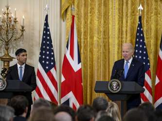 Sözcü'de yer alan habere göre Rishi Sunak ve Joe Biden, ikili görüşmelerinin ardından Beyaz Saray’da ortak basın toplantısı düzenledi. Biden, ikili ekonomik ilişkileri derinleştirmek ve geleceği şekillendirecek işbirliklerini genişletmek adına “önemli ve olumlu” görüşmeler gerçekleştirdiklerini belirterek, hızla değişen dünyada teknoloji ve ekonomi alanlarındaki işbirliklerini masaya yatırdıklarını söyledi.