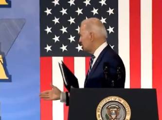 Kürsüde yaptığı konuşma sonrasında sağına dönen Biden tokalaşmak için karşısında birisi varmış gibi elini uzattı. Ancak karşısında kimse yoktu ve Biden bir süre durduktan sonra kürsüden ayrıldı.