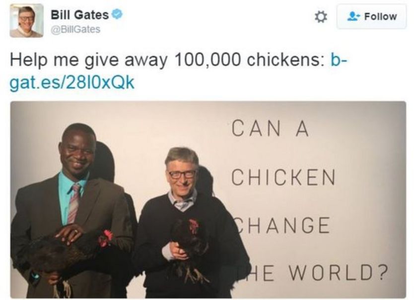 Gates'in tavuk yetiştiriciliği projesinin internet sayfası binlerce kişi tarafından sosyal medyada paylaşılmış durumda.