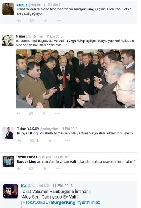 Zaman'ın haberine göre 'Orada İsrail uşaklığı öğretiliyor' diyerek cami kapatan valinin skandal sözlerinin üzerinden henüz 10 gün geçmeden fast food zinciri Burger King'in şubesinin dualarla açılışını yaptığını gösteren fotoğraf sosyal medyada gündem oldu. Tokat Valisi olduğu dönemde açılışını yaptığı Burger King fotoğrafları üzerine birçok yorum yapıldı.