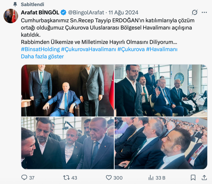 Gözaltına alınanlardan Arafat Bingöl’ün sosyal medya hesabında Cumhurbaşkanı ve AKP Genel Başkanı Recep Tayyip Erdoğan ile 2024 yılında Çukurova Uluslararası Bölgesel Havalimanı açılışında çekildikleri fotoğraflarının yer alması dikkati çekti.