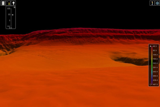 Kızıl Deniz'in altındaki kanyona ait bir sonar görüntü