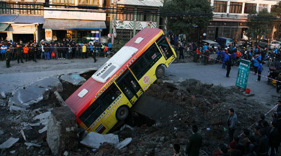 belediye otobüsünün düştüğü bildirildi. Yolun altında meydana gelen patlama sonucu açılan çukura düşen otobüsün şoförü ve yol kenarında bulunan 6 yaşındaki bir çocuğun yaralandığı belirtildi. Kaza sırasında otobüste yolcu bulunmaması ise büyük bir faciayı önledi.