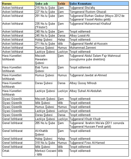 gözaltı merkezinin yerleri, merkezlerin hangi birimlerin idaresinde olduğu, buralarda uygulanan işkence yöntemleri ve bu merkezlerden sorumlu komutanların adları yer alıyor.