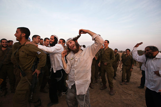 kara harekatı için bekleyen askerler, aşırı dinci İsrailli yerleşimciler tarafından sık sık ziyaret ediliyor.