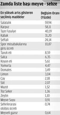 kabak izledi. Tüketici fiyatları açısından ağustos ayında fiyatı en çok düşen ürün ise yüzde 22,48 ile numaralı