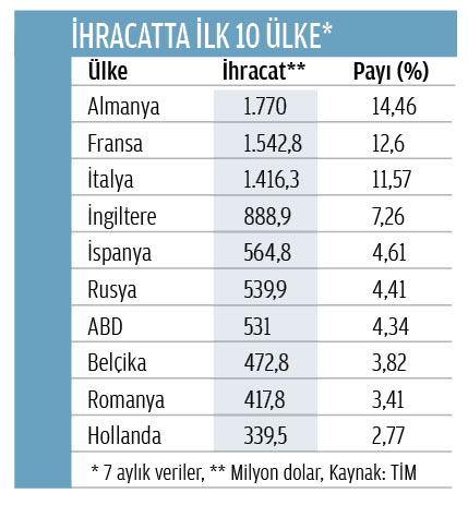 Ürün gruplarına göre yapılan değerlendirmede otomotiv yan sanayii temmuz ayında ihracatta yüzde 26 artış sağlayarak 678 milyon dolar dış satışa ulaştı. Yılın ilk 7 aylık döneminde ise aynı
