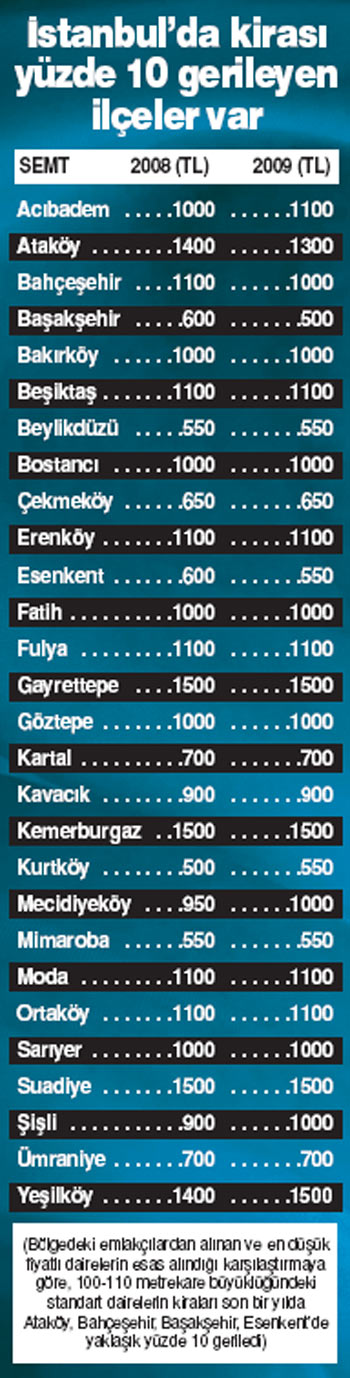 Bahçeşehir, Esenkent gibi yerlerde kiralarda yüzde 10’a yakın düşüşler gözlendi.