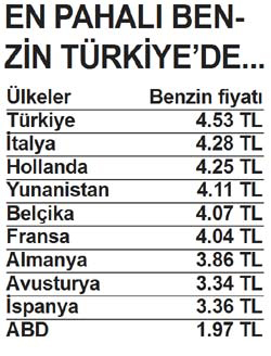 Zamdan sonra Avrupa'daki en pahalı benzin Türkiye'de satılmaya başlandı. Avrupa'daki en pahalı benzinin satıldığı ülke olan İtalya'da bile benzinin litre fiyatı 4.28 lira (1.83 euro) oldu.
