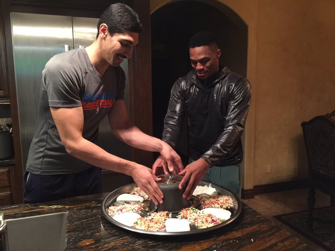 Oklahoma City Thunder'da formasıyla ülkemizi NBA'de temsil eden Enes Kanter, takım arkadaşı Russell Westbrook ile yaptığı maklubeyi twitter adresinde paylaştı.