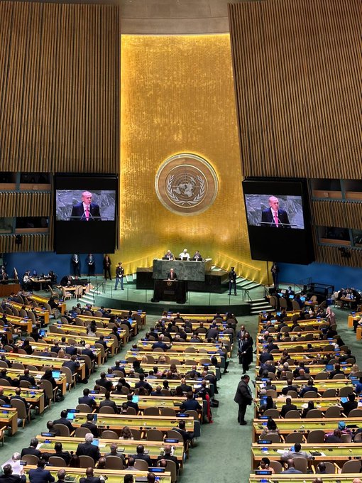 TÜGVA Genel Başkanı İbrahim Beşinci, sosyal medya hesabından yaptığı paylaşımda “BM Genel Kurulu’nda Cumhurbaşkanımız Sayın Erdoğan’ı dinledik” ifadelerini kullanarak BM Genel Kurulu’ndan fotoğrafını paylaştı.