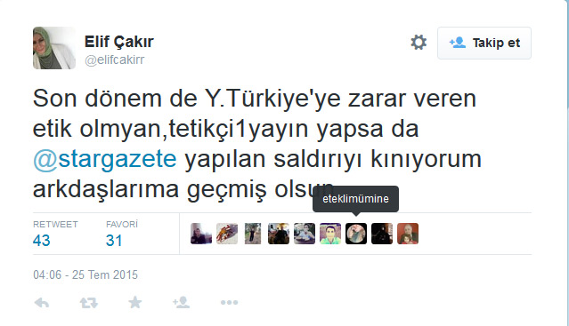 Eski Star yazarı Çakır'dan, Star gazetesine 'tetikçi' tweeti!