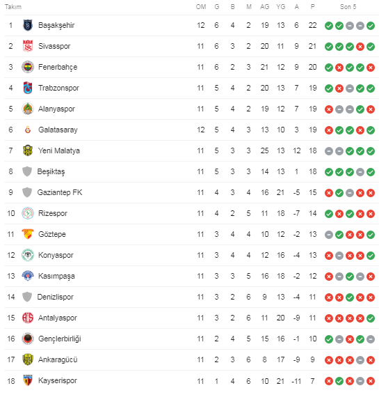 Süper Lig’in 12. haftasının açılış maçında Başakşehir deplasmanda Galatasaray’ı 1-0 mağlup etti. Konuk ekip Gulbrandsen attığı golle üç puanı alırken Sarı-Kırmızılı takımın da evindeki 41 maçlık yenilmezlik serisine son verdi. Medipol Başakşehir bu galibiyetle puanını 22’ye çıkardı ve maç fazlasıyla liderlik koltuğuna oturdu. Galatasaray, 19 puanda kaldı.