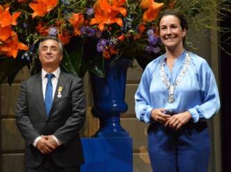 ”Sayın Basri Doğan, Amsterdam özgürlüğe çok önem veren bir şehir. Özgür ifade ve düşüncelerini söylemek en önemli prensiplerimizden. Bu salonda bunun ne kadar önemli olduğunu anlayan biri varsa o da sizsiniz. İfadelerinizden ve barışçıl ideallerinizden dolayı çok kere ölüm ile tehdit edildiniz. Bu korkunç ve kabul edilemez. Siz birçok medya kuruluşuna gazeteci kimliğinizle özgür ifadenin önemi ve çok kültürlü toplumumuz hakkında haberler yapıyorsunuz. Siz sosyal bir insansınız ve birçok dernek için gönüllü olarak çalışıyorsunuz. Çalışmalarınızda entegrasyon ve uyuma katkı sağlayarak Hollanda toplumuna hizmet ediyorsunuz. Mahallenizde programlar düzenlediniz ve programlarda organizatörlük ve başkanlık yaptınız ama mutfak temizlenmesi gerektiği zaman ise yeri geldi orayı da temizlediniz. Platform İNS ve Witboek vakfındaki çalışmalarınızda toplumdaki ayrıştırmaları gündeme getirecek projeler üretiyorsunuz ve projeler üretiyorsunuz. ‘Huis Van De Wijk Aker‘ semt evinde toplumsal entegrasyon konulu çalışmalar yapıyorsunuz. Bu çalışmalarınızı büyük bir içtenlikle yapıyorsunuz. Çünkü siz çok kültürlülük, diyalog ve demoktratik değerlerden güç alıyorsunuz. Siz aktif bir şekilde insanlar arasında köprüler kuruyorsunuz ve yardıma muhtaç olan insanlara yardım ediyorsunuz. Mesela doğduğu ülkelerinden farklı düşündükleri için çıkarak buraya sığınan insanlara yardım ediyorsunuz. Sayın Doğan siz Hollanda Kraliyet ailesi üyesi oldunuz ve kraliyet nişanına layık görüldünüz.”