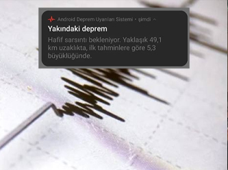Android cihazlardaki Deprem Uyarı Sistemi Malatya’daki 5.3'lük depremini 15 saniye öncesinden bilerek uyarı verdi.