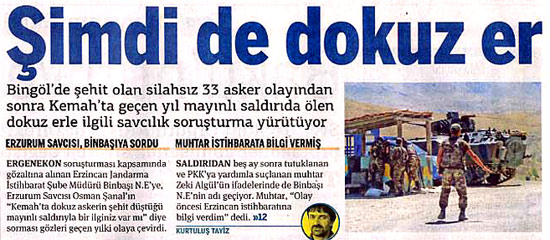 muhtar Zeki Algül'ün ifadelerinde de Binbaşı N:E'nin adı geçiyor.Muhtar, "Olay öncesi Erzincan istihbaratına bilgi verdim" dedi.