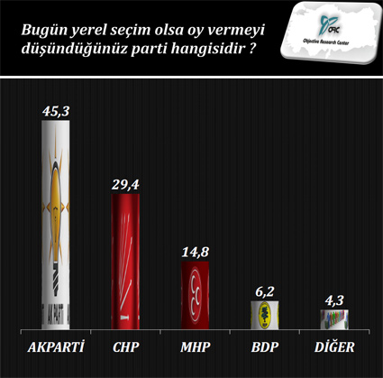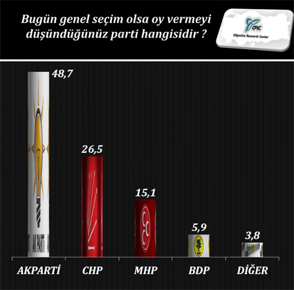ORC araştırma şirketi tarafından, 20-24 Nisan 2013 tarihleri arasında, 42 ilde, farklı sosyo-ekonomik ve sosyo demografik gruba mensup 5250 kişi ile yapılan anket sonuçları açıklandı...