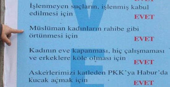 evet' dersek, Müslüman kadınlarımız rahibe gibi örtünecekmiş. Ne kadınlarımız ne de Türk milleti aptal değil, kimseyi aptal yerine koymasın. Anayasa Mahkemesi'ne gidip başörtüsü için