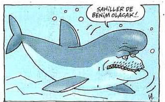 Başbakan Erdoğan'ı yine sinirlendireceğe benziyor. Hürriyet birinci sayfadan verdiği karikatürde Başbakan Erdoğan'ı köpek balığına benzetti.