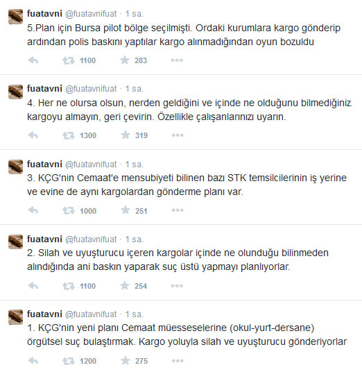 baskın yaparak suç üstü yapılması planlandığını yazan Fuatavni, içinde ne olduğunu bilmediğiniz kargoyu almayın uyarısında bulundu.