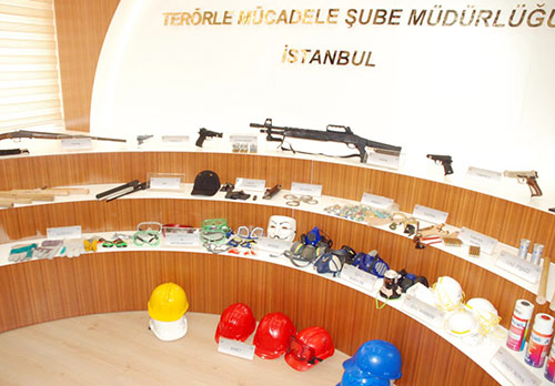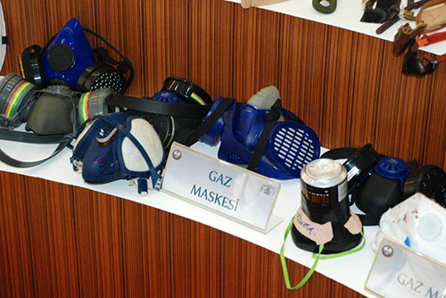 İstanbul'da Gezi olaylarına karışan kişilere yönelik dün yapılan operasyonlarda ele geçirilen malzemeler emniyette sergilendi.