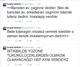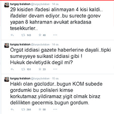 Gözaltındaki polislerin avukatlarından Turgay Balaban ile Murat Uzun, emniyetteki sorguda yaşananları, sosyal paylaşım sitesi Twitter'den kamuoyuyla paylaştı.