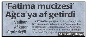 13 Haziran 2000 - Ağca affedildi ve aynı gün Türkiye'ye gönderildi.