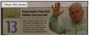 vefat ettiği sırada odada toplam 13 kişinin bulunduğu ölüm raporunda belirtildi. (4 Nisan 2005)