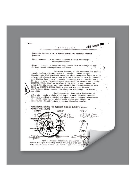 imza sirkülerlerinin yer aldığı noter belgesinde söz konusu kişilerin şirketin işlemleriyle ilgili konularda imza yetkisine sahip olduğu belirtiliyor.