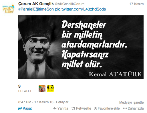 Geçtiğimiz günlerde ortaya çıkan ve Atatürk başta olmak üzere devlet büyüklerine atfen yazılıp twitter'da dolaşıma sokulan bazı skandal ifadelerden biri