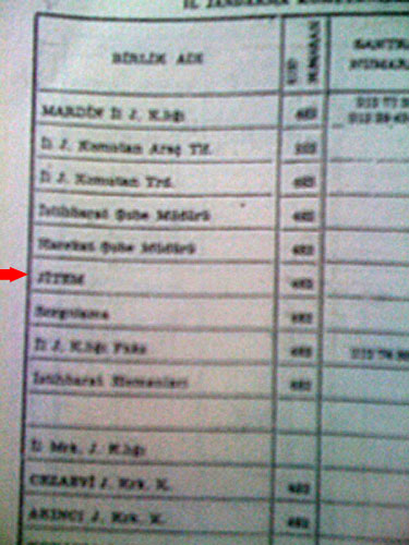 telefon rehberinde JİTEM de yer alıyor. Jandarma Genel Komutanlığı Basımevi'nde basılan telefon rehberinde birliklerin tek tek telefon numaraları yer alıyor.