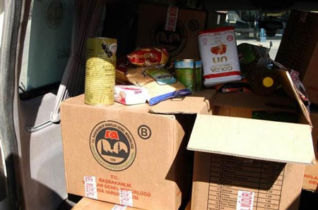 Üzerinde, ‘Başbakanlık Vakıflar Genel Müdürlüğü, Kastamonu Vakıflar Bölge Müdürlüğü Yardım Paketleri Dağıtım Aracı’ yazan kamyonetteki görevliler, kentte ihtiyaç sahibi ailelere, çay , şeker, salça, zeytin, kuru fasulye, makarna, mercimek, nohut, bulgur, şehriye, pirinç, kuru üzüm gibi gıdaların bulunduğu yardım paketleri dağıttı.