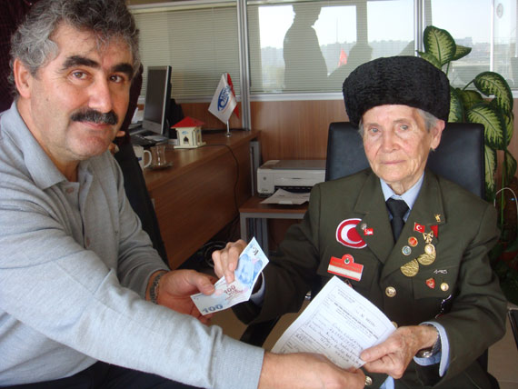 Kimse Yok Mu ziyareti sırasında derneğe bağışta bulunan Emine Teyze, derneğe yaptığı bağışı kendi elleri ile Mağdur