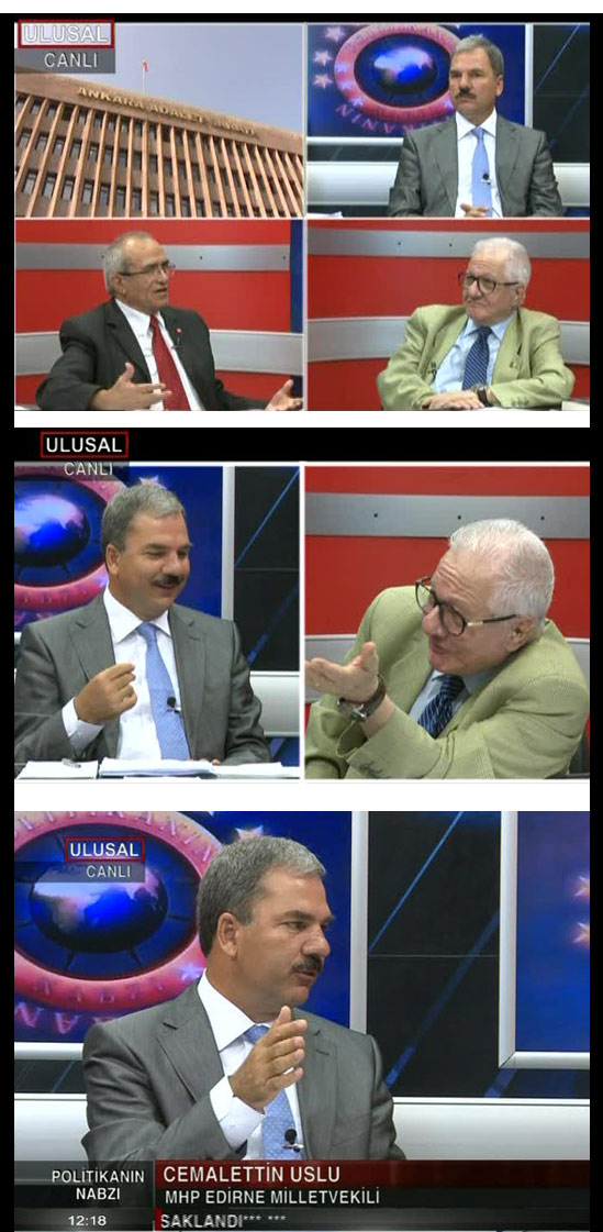 İşçi Partisi lideri Doğu Perinçek'in kanalına bugün MHP'nin Edirne Milletvekili Cemalettin Uslu konuk olarak katıldı. Teröristbaşı ile samimi fotoğrafları ortaya çıkan Ergenekon sanığı Doğu Perinçek'in televiyonunda "referanduma sayılı günler kala" yaşanan bu görüntü şaşkınlık meydana getirdi. Tarihi referandumdan “evet” çıkmaması için kulislerin yapıldığı şu günlerde oldukça sıcak sohbetin yaşandığı programdan ilginç görüntüler de hafızalara kazındı.