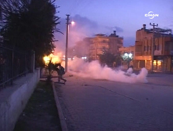 Atılan molotof kokteyli, taş ve havai fişekler merkez ile merkez önündeki polis otolarında maddi hasara yol açtı.