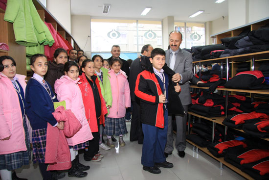 Okul Aile Birliği yöneticileri nezaretinde gerçekleşiyor. Okullarından belediye araçlarıyla alınarak çarşıya getirilen öğrenciler, dağıtımdan sonra tekrar okullarına bırakılıyor. İki hafta sürecek mont dağıtımından sonra da ihtiyaç sahibi öğrencilere kışlık