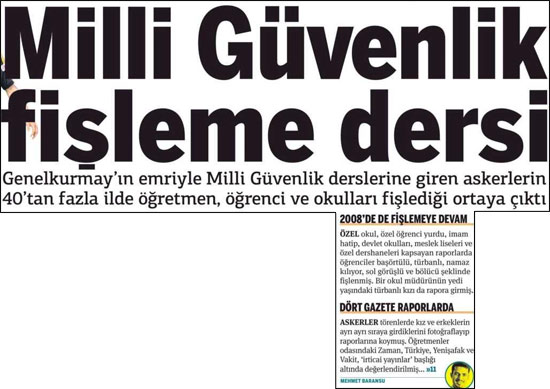 Milli Güvenlik Dersi öğretmenlerinin dikkatinden kaçmadı. Subay öğretmenler bu uygulamayı fotoğraflarıyla birlikte istihbarat birimlerine bildirdi. Yedi yaşındaki türbanlı kız çocuğunun müdür yardımcısı olan babasını okulda ziyaret etmesi de fişleme raporuna girdi.
