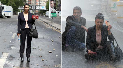 1 Mayıs’ı Emek ve Dayanışma Günü’nü Kızılay’da kutlamak isteyen eylemcilere polis Ankara Kızılay girişinde müdahale etti. Elinde çantası ve kimliği ile polise karşı tepkisini gösteren bir kadın, oturma eylemi yaptı. Polisin uyarılarına rağmen eylemini devam ettiren kadına TOMA tazyikli su ile müdahalede bulunurken özelikle sosyal medyada olay ve ortaya çıkan resim çokça tartışıldı