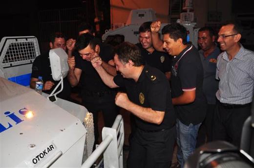 Müdahalenin ardından Şuh Cemil Caddesi girişine çekilen polis ekipleri, akrep tabir edilen aracın üzerine koydukları cep telefonundan Romanya-Türkiye futbol karşılaşmasını izlediler. Zaman zaman heyecanlı dakikalar yaşayan polisler gol sonrası da sevinç yaşadılar.