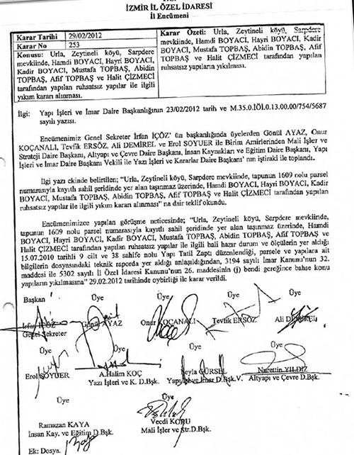 İşadamı Latif Topbaş tarafından yaptırılan lüks villalar için birinci derecede sit alanı üzerinde yaptırıldığı gerekçesiyle, 2010 Eylül ayında yıkım kararı verildiği ve kararın tüm yetkililere tebliğ edildiği ortaya çıktı.