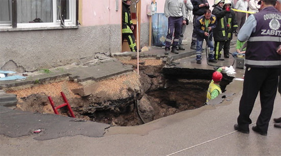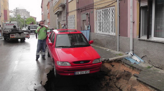 çukurun içine düştü. Çukura düşen otomobiller bölgeden geçmekte olan doğalgaz borusunu da deldi. Çökmeyi