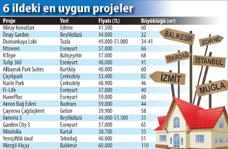 Edirne ve Muğla'nın da olduğu 6 şehirde 37 bin ile 60 bin lira arası değişen fiyatlarla özel sektördeki projelerden sıfır, küçük bir daire satın almak mümkün.